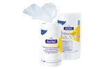 Gebrauchsfertige, alkoholische Schnell-Desinfektionstücher in praktischer Spenderdose.